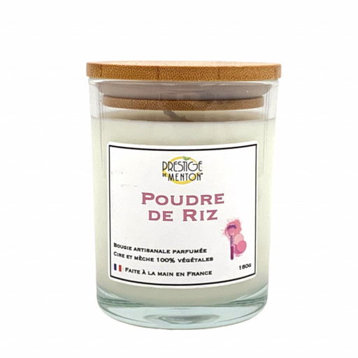 Une bougie Artisanale au parfum apaisant et très enveloppant de la poudre de Riz. Un cocon de délicatesse et de douceur.