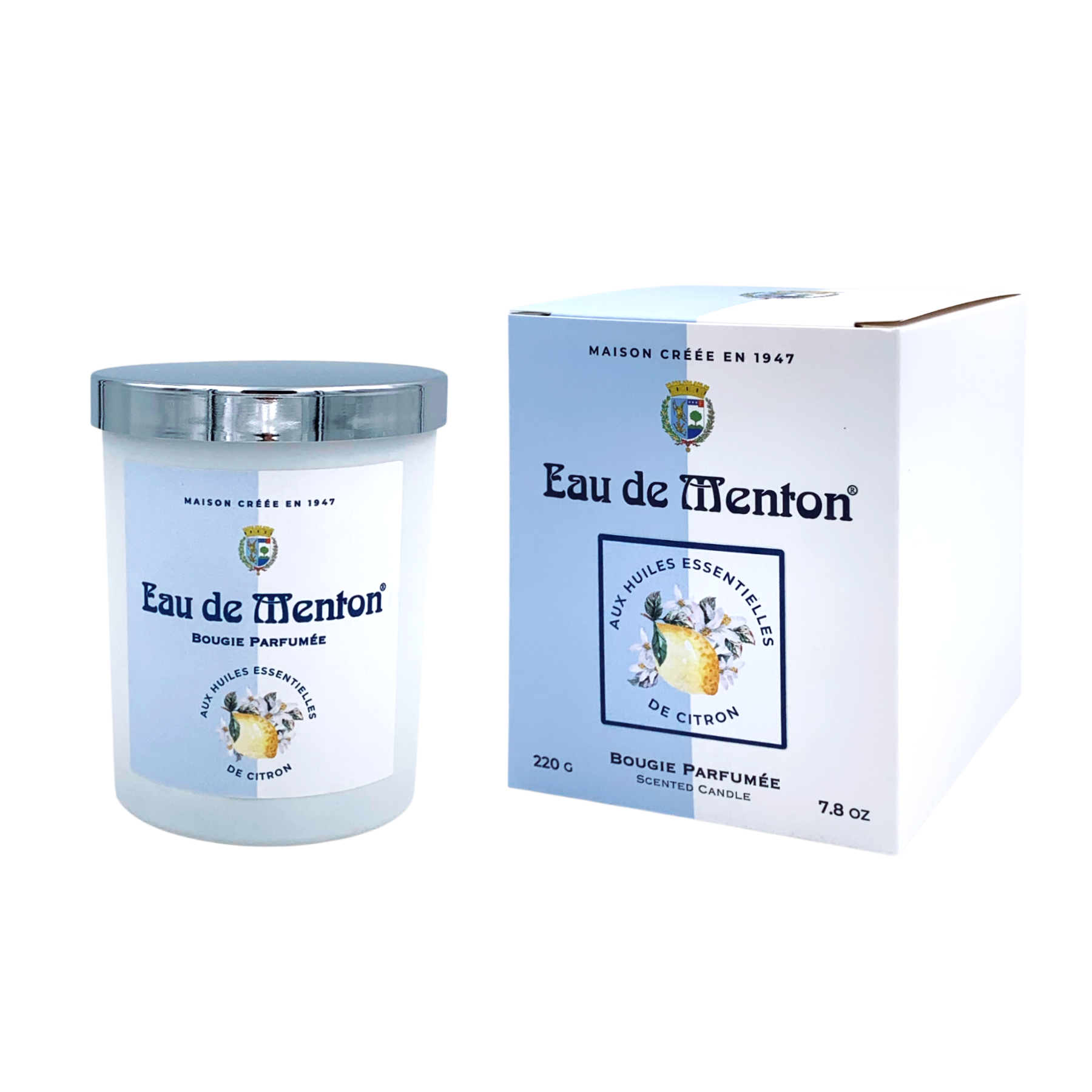 Bougie Artisanale avec un de nos parfums stars, Prestige de Menton, aux huiles essentielles de citron.
