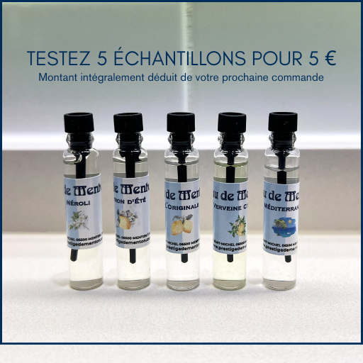 – Votre choix de 5 de nos parfums ou eaux de toilette (tubes de 2ml environ),